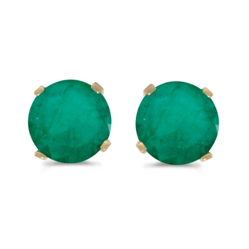 -. Title : 5 mm Natural Round Emerald Stud Earrings Set in 14k Yellow Gold