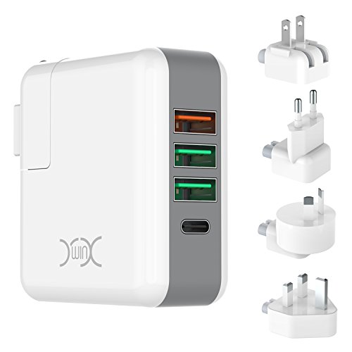 -. Title : USB Charger Plug YXwin 4-Ports International Travel Charger Adapter with UK EU US AU International Plug Quick Charge 3.0 Tech Type C for MacBook Wall Charger for Apple iPhone ,iPad, Samsung Galaxy