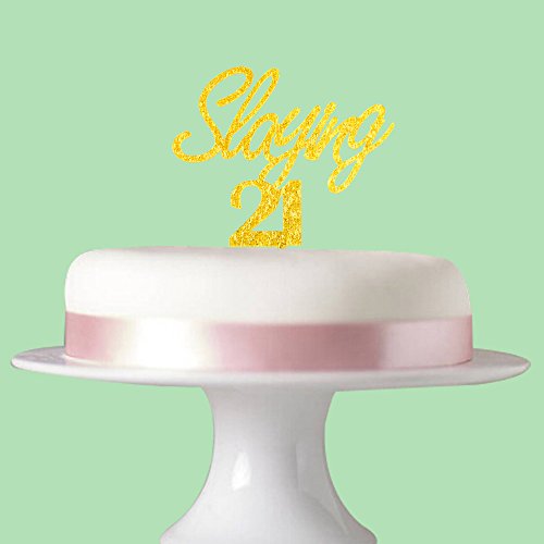 Slaying 21 cake topper for 21st birthday party decorations Gold acrylic