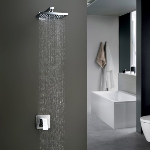 -. Title : Sprinkle Chrome Wall Mount Rainfall Single Handle Ceramic Valve Bathroom Bath Shower Faucet Square Fixed Shower Head with Shower Handle Cheap Discount Unique Designer Plumbing Fixtures Single Hole Faucet Direct