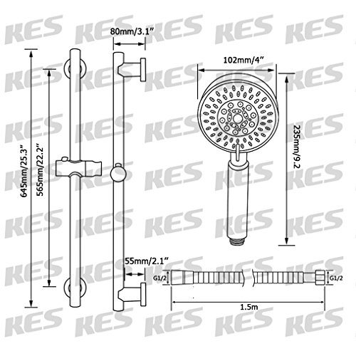 KES 5-Function Hand Shower Head with Adjustable Slide Bar, Polished SUS304 Stainless Steel, F204+KP500