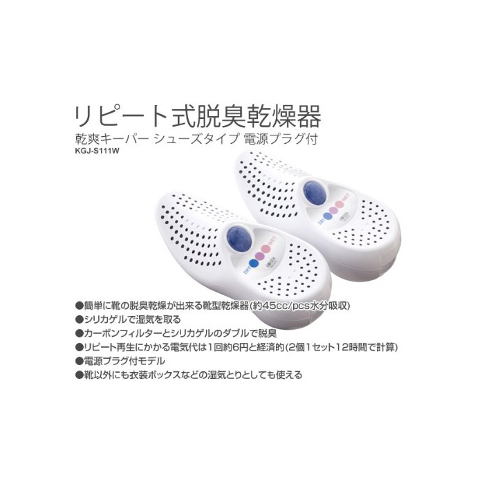 원본상품명: ?電(KODEN) リピ?ト式?臭乾燥器 乾爽キ?パ?(シュ?ズタイプ) 電源プラグ付 ホワイト KGJ-S111W