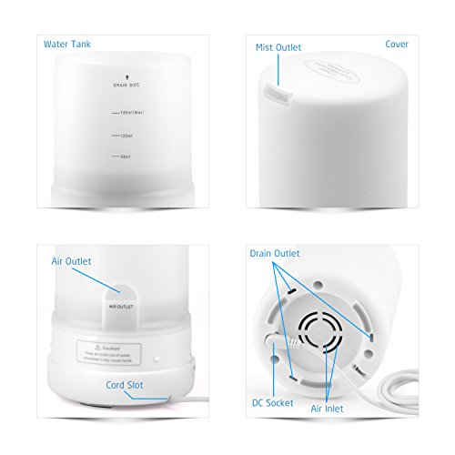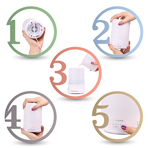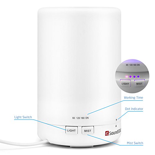 SoundSOUL Aromatherapy Essential Oil Diffuser Ultrasonic Cool Mist Aroma Humidfier for Home Bedroom Office (180ml, 7 Color LED, Waterless Auto Shut-off, 4 Timers setting, 8-10 Hours Continuous use)