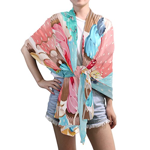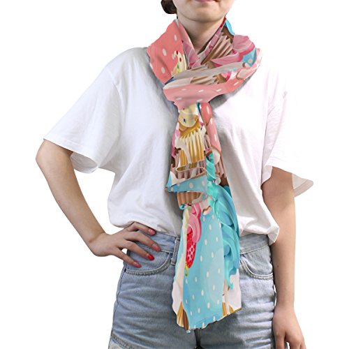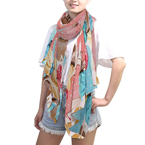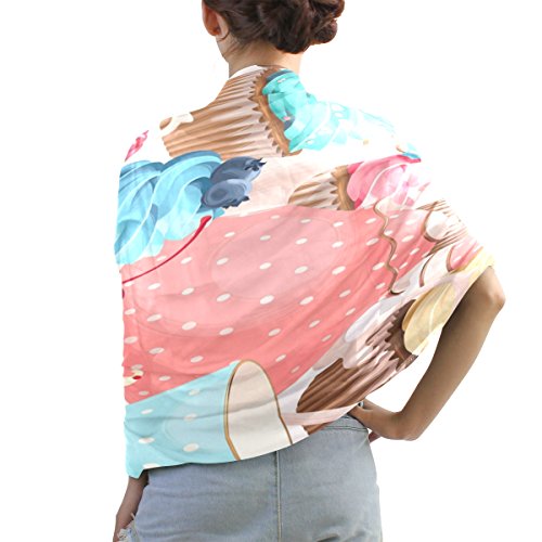 (ALAZA)/Accessories/Cold Weather Accessories/DIRECT FROM USA/ALAZA Watercolor Teacups Cupcake Chiffon Silk Long Scarf Shawl Wrap