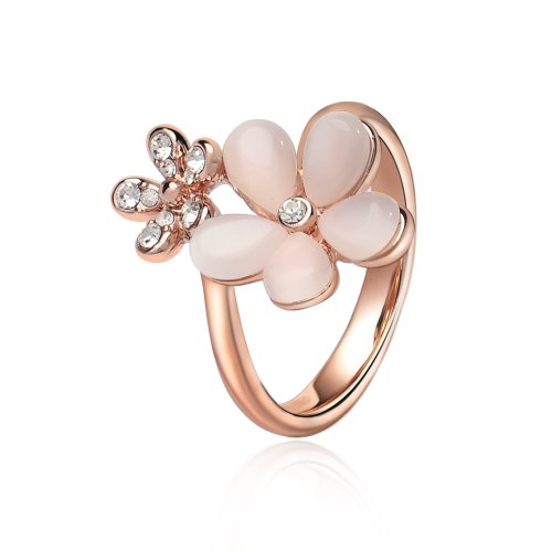 -. Title : ブランドIUHA 18Kピンクゴールドメッキ 可憐なキャッツアイフラワーモチーフデザインリング 指輪 オーストリア産のCZダイヤモンド