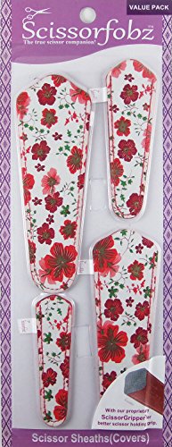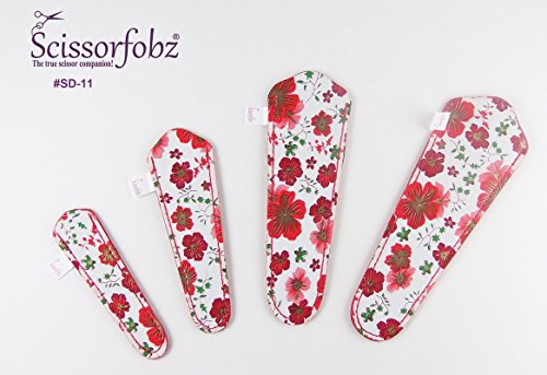 Scissors by SCISSORFOBZ with ScissorGripper -VALUE PACK-4 sizes- Designer Scissor Covers Holders for embroidery sewing quilting - Quilters sewers gift - Red Floral Print. #11
