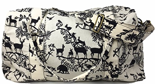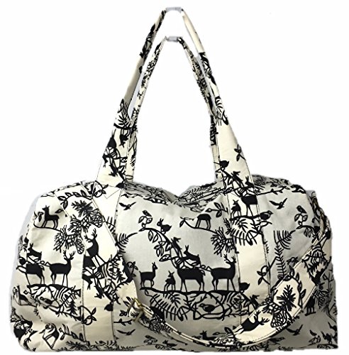 -. Brand : Ming's -. Color : Black, White -. Department : womens -. EAN : 0613165307329 -. Feature : Set of 2 includes: 1 Travel Duffle Bag + 1 Cross Body Purse / Duffle measures 22.5 inches wide, 11.5 inches tall, 11 inches deep / Both Bags have long adjustable straps, long duffle strap is detachable / Both Bags are fully lined with sturdy grey denim and zip fully closed / Both bags have have one small interior pocket, Duffle has 2 large exterior side pockets -. PackageQuantity : 2 -. ProductGroup : Apparel -. ProductTypeName : LAGE -. Size : X-Large -. Title : Overnighter Large Travel Duffle Bag and Crossbody Purse Set, Forest Animals -. UPC : 613165307329
