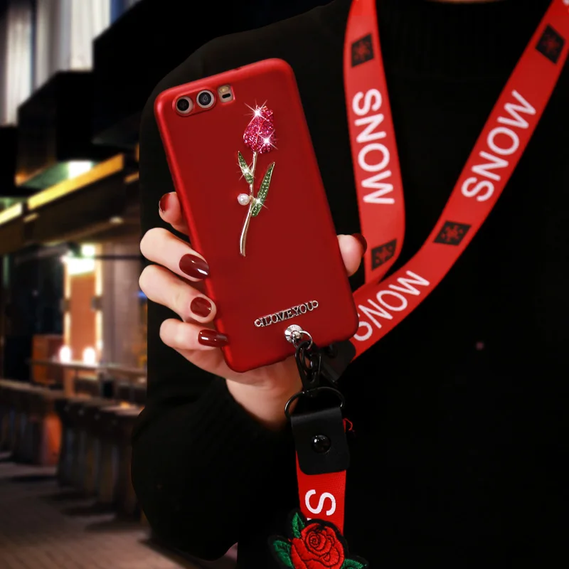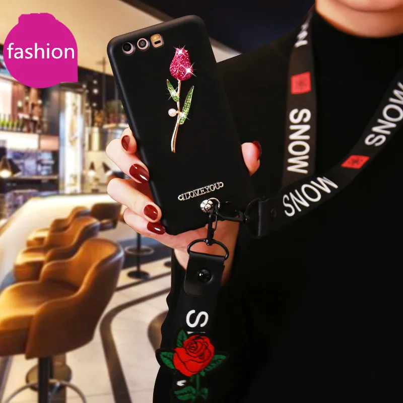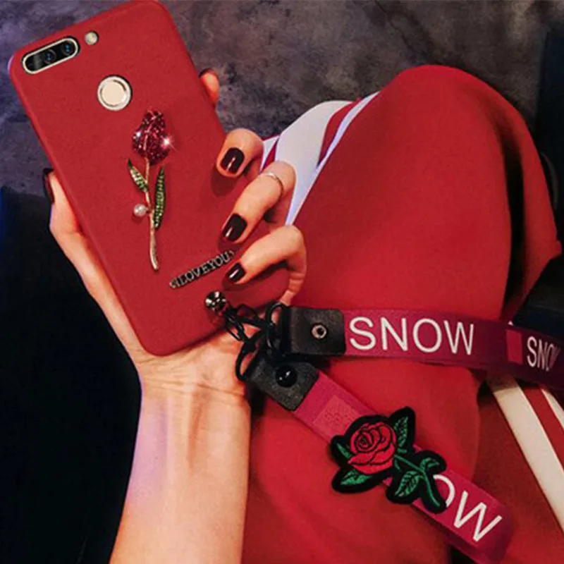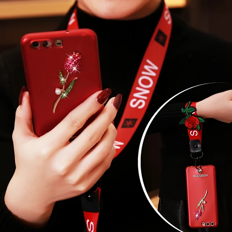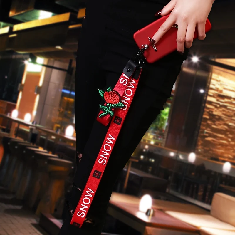 material:Embroidery Rose Wrist strap Lanyard + Stud Rivet +Hard PC