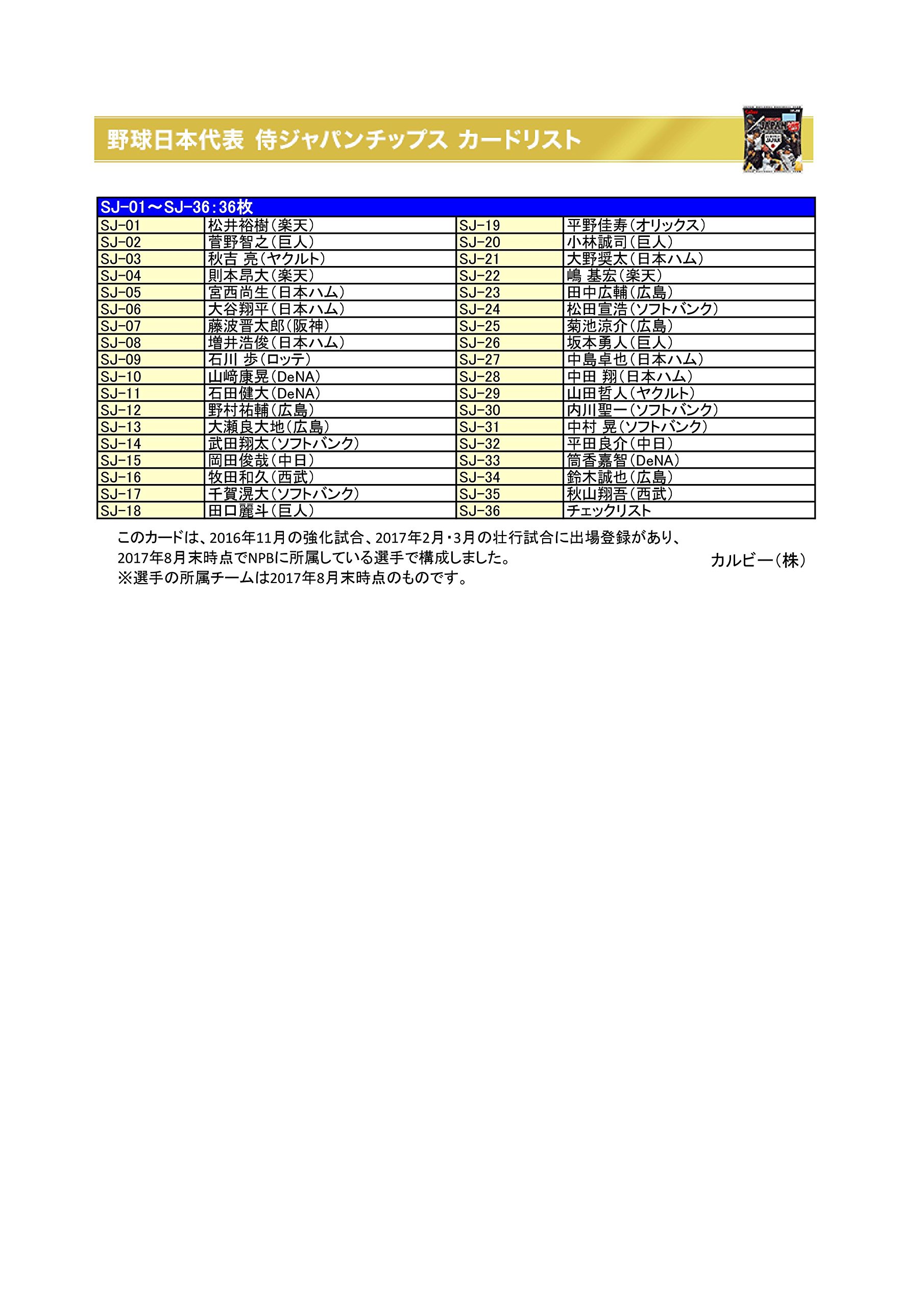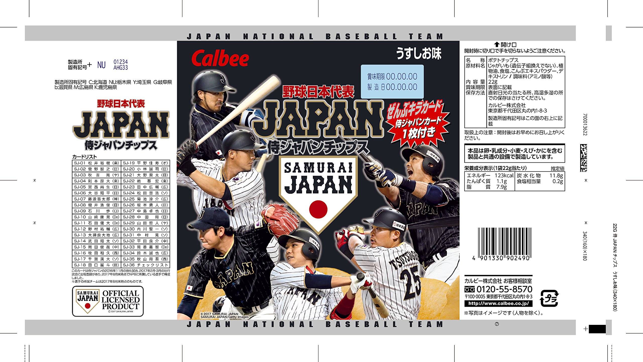 Samurai JAPAN (Baseball Japan national team) players' cards and a set of potato chipsuisushi taste set.