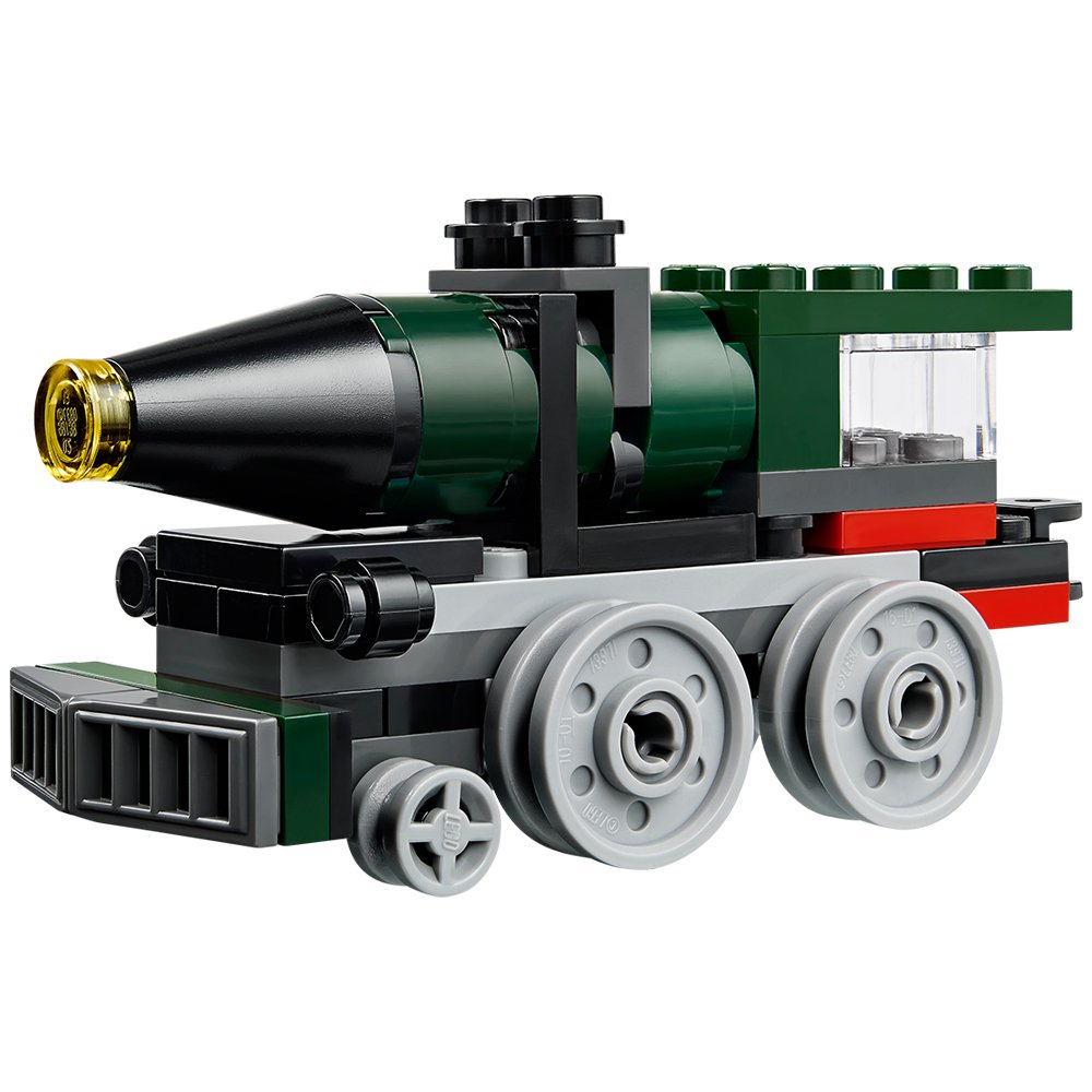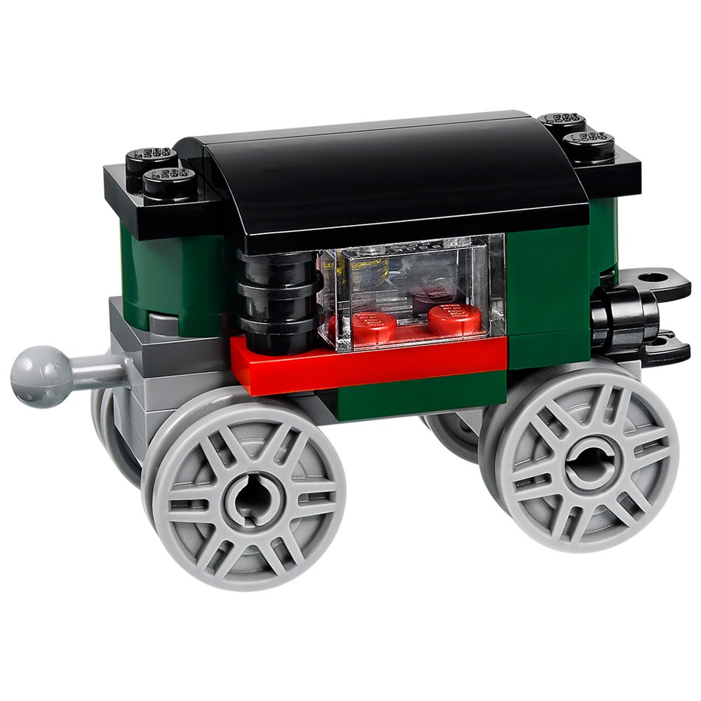 Full speed forward! Colorful Emerald Express has lots of unique features such as old-fashioned pants, driving cabin, front bar for pushing out cattle, etc. It can be converted to high-speed rocket train or passenger car.