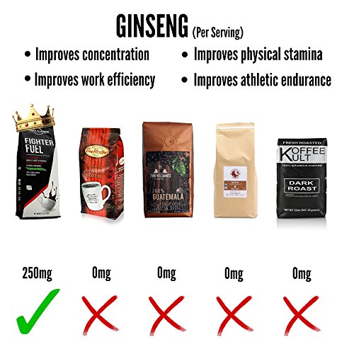 Fighter Fuel will do more than just give you a slight "buzz" in energy; it will make you feel supercharged and ready to train like a mutant on a mission. The energy rush comes from only two ingredients: 100% Arabica coffee (ground) and Panax Ginseng.