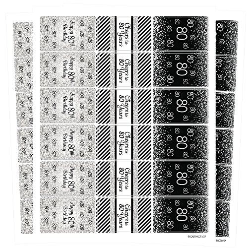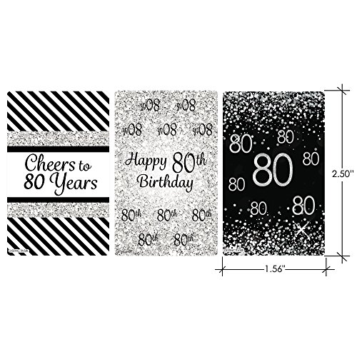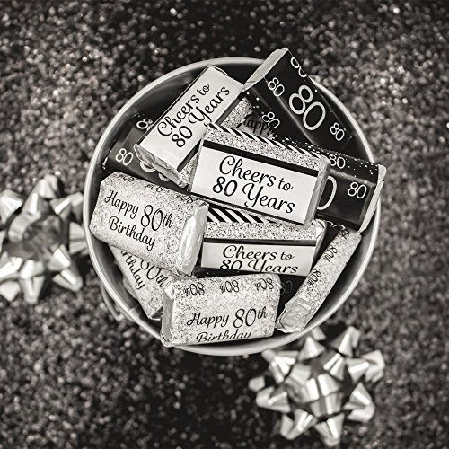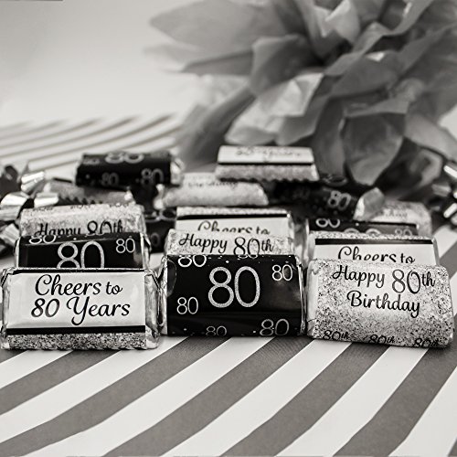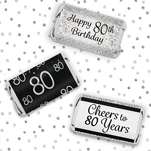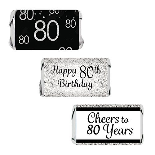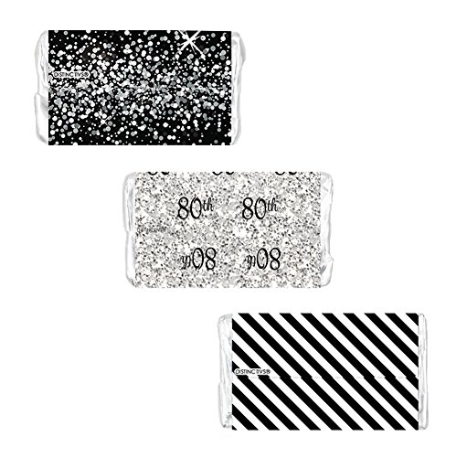 Black and Silver 80th Birthday Party Favors - Mini Candy Bar Wrapper Stickers (54 Count)