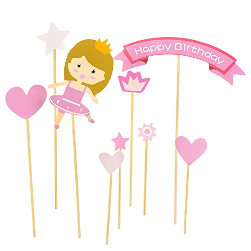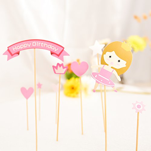 Cake Toppers, Zubita Birthday Cake Cupcake Toppers Happy Birthday Bunting Little Girl with Pink Dress Stars loving?hearts Pattern Banners for Party Cake Decorating