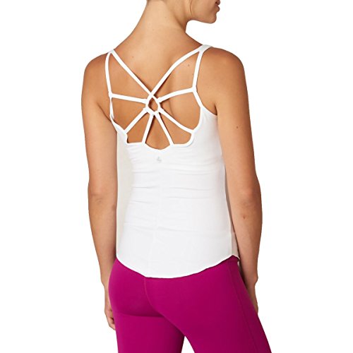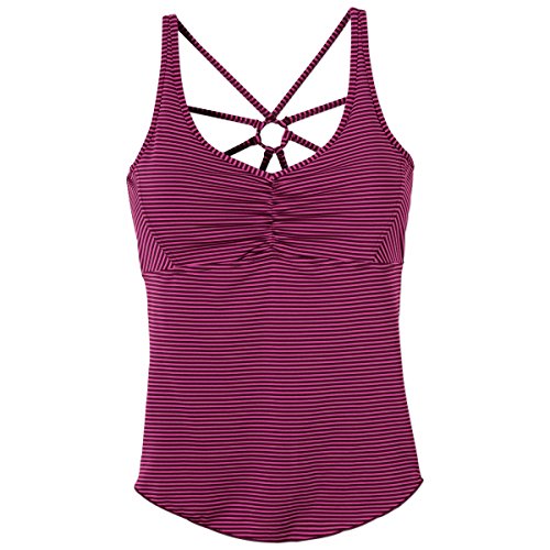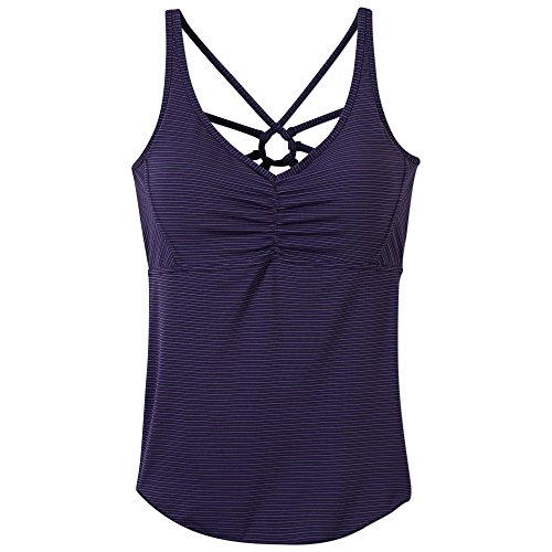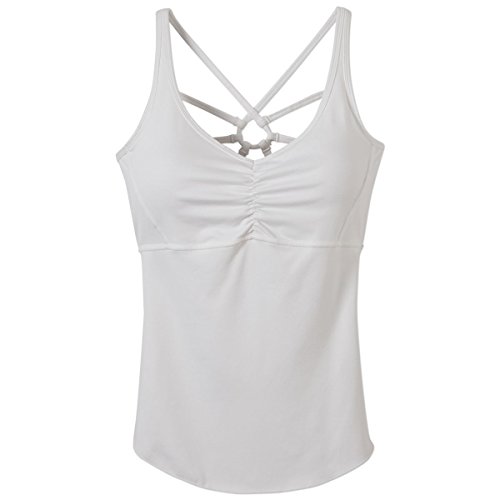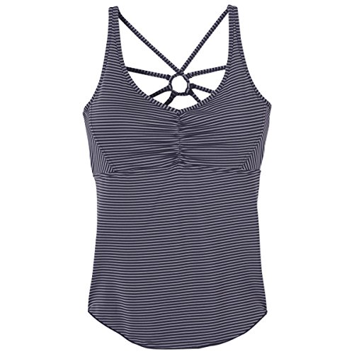 Banish distracting thoughts from the yoga studio with the prAna Dreaming Top. Let a uniquely webbed back strap design catch any unwelcome vibrations. Recycled performance material and an interior shelf bra with removable cups are ready for a workout.Feature