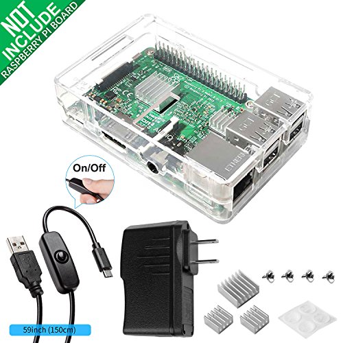 Smraza Case for Raspberry Pi 3 2 Model B with Power Supply,2pcs Heatsinks and Micro USB with On/Off Switch