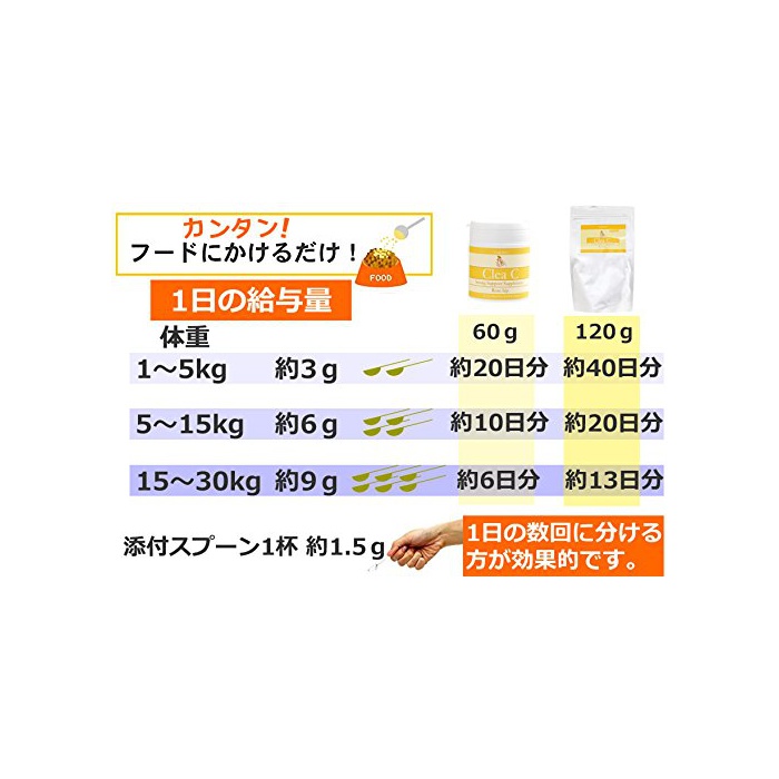 ■줘 분(쪽,편)(1일량) 소형견 첨부 스푼에 2배(약3g) 중형견 첨부 스푼에 4 배대형 견첨부 스푼에 6배