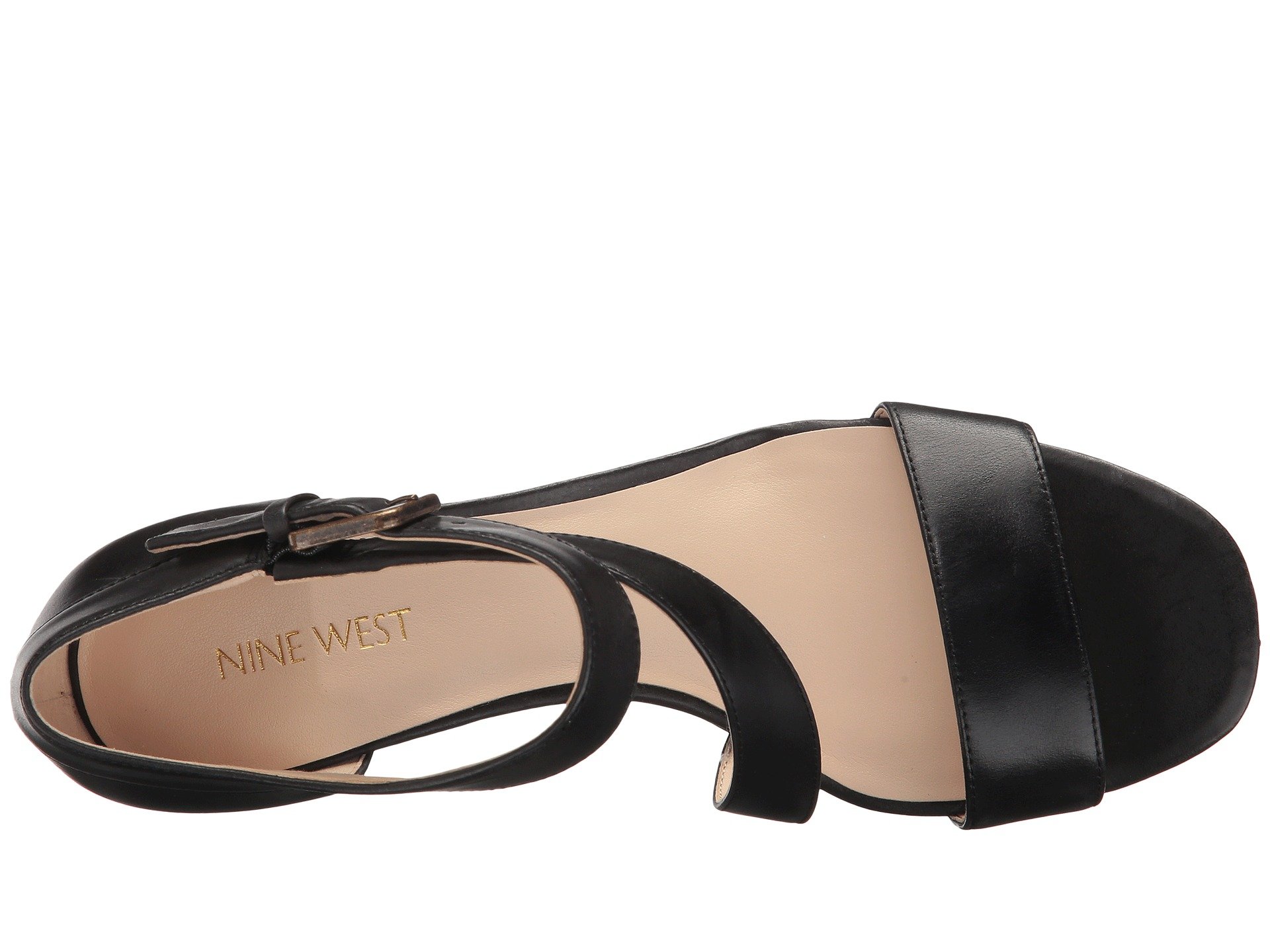 | Product Information SKU: #8894590Complement any ensemble with the chic Nine West? Talen sandal.Leather or patent upper.Ankle strap with buckle closure.Open-toe silhouette.Asymmetrical strap across vamp.Man-made lining.Lightly padded footbed.Wrapped block heel.Man-made sole.Imported.Product measurements were taken using size 9, width M. Please note that measurements may vary by size.Weight of footwear is based on a single item, not a pair.Measurements: Heel Height: 2 1?2 in Weight: 10 oz |