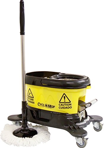 Studio : CycloMop® Publisher : CycloMop® Binding : Office Product Product Description SOLD SHIPPED BY: SPEEDY SWEEP® JANITORIAL EQUIPMENT SUPPLY Sales Service Center ? Factory Direct Warranty Center ? THE CYCLOMOP® IS THE ONLY COMMERCIALLY DESIGNED SPIN MOP WITH DOLLY WHEELS Bucket Cleaning System on the Market that is By Far the Most Durable Spin Mop Ever Made. The Quality is Second to None Guaranteed with the Reinforced 2 Times Extra Strength Mop Handle and Mop Head Attachment. The Mop Head is also Bigger making it Easy to Clean Faster over Traditional Mop Heads. THE CYCLOMOP® also has a Extra Strength Foot Pedal Design that Rings and Wash the Mop Head the Best We Have Ever Seen ? THE CYCLOMOP® is also the Only Spinning Spin Mop System that comes with a 4 Wheel Dolly and is also the Only Designed with Caution / Hazard Wet Floor Logos for Safety if Used in a Business ? THE CYCLOMOP® has a Stainless Steel Mop Head Spinner with Dual Action Cleaning Handle to Easily Spin Dry or Wash the 100% Microfiber Polyester Mop Heads. The Heavy-duty Water Bucket has a Water Drain to Empty Easily Outdoors or in a Water Floor Drain ? THE CYCLOMOP® Includes: (2) Microfiber Mop Heads ($20 value) with Increased Water and Dirt Absorption (1) Mop Handle (1) Bucket and Comes with a Satisfaction Money Back Guarantee " If You Have Tried the Rest Try the Best! 0