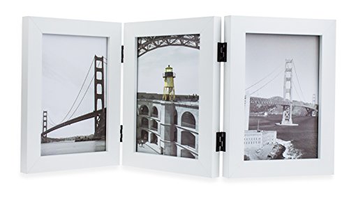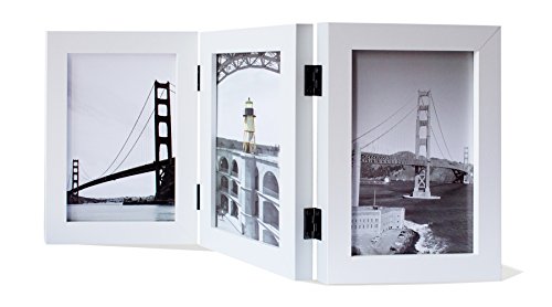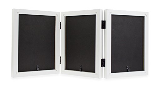 Frametory, 5x7 Inch Hinged Picture Frame with Glass Front - Made to Display Three 5x7 Inch Pictures, Stands Vertically on Desktop or Table Top (Triple, White)