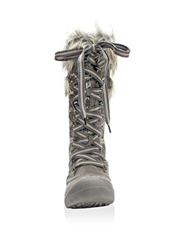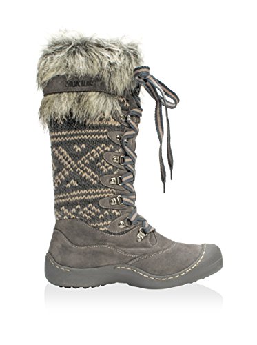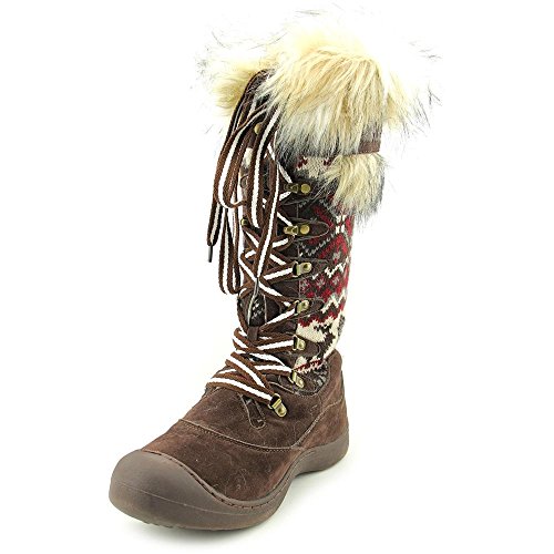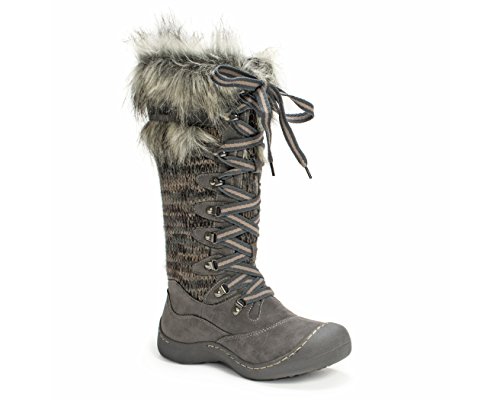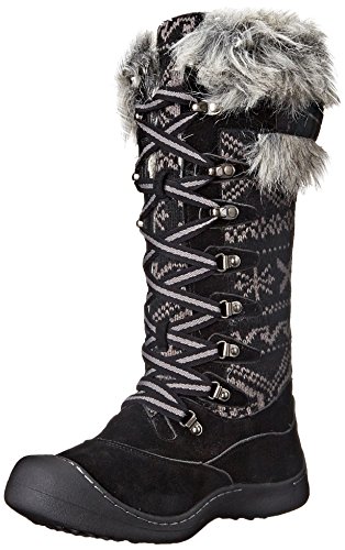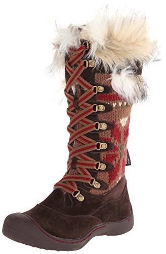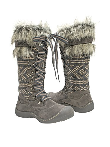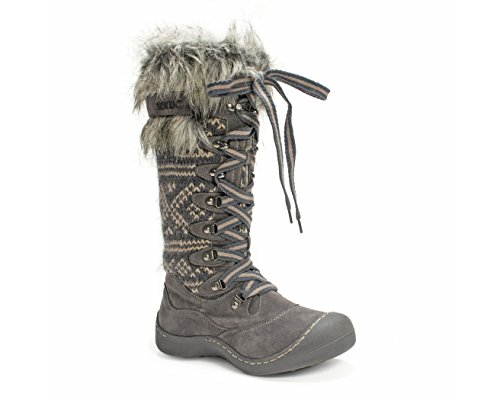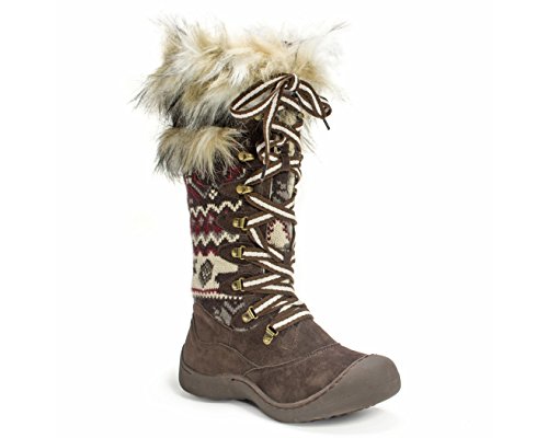 MUK LUKS is offering unbelievable style and warmth in one this season with the Gwen Tall Snow Boot. These super warm boots have more of a shoe design so you'll have the protection of the snow boot but won't have to deal with a bulky, heavy boot! Muk Luks snow boots are water resistant and have Thinsulate technology to ensure your feet stay dry and warm even on the coldest and snowiest of days this winter. The Upper is made of 100% Acrylic Knit and 100% Polyester Suede fabrics and lined with 100% Polyester Sherpa with some fashionable fur decorating the top of the boot. The eyelit lacing allows you to easily adjust the fit of the snow boot and the height of the knot. Wipe with a damp cloth to clean, no bleach, and lay flat to dry. Made in China. Material: Polyester, Acrylic.Feature