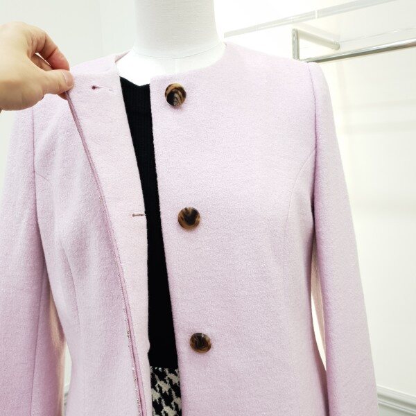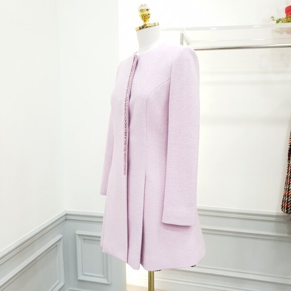 앞라인에 살짝보이는 비딩장식으로 포인트를준 여성스런느낌의 핏앤플레어 자켓입니다~~~♡♡사랑스런컬러감 총장78cm