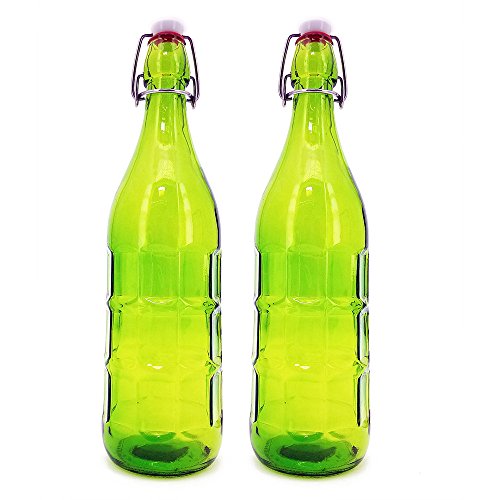 Modern Home 1L/34oz Culaccino Swing Top Round Glass Bottle - Textured Squares Lime Green - Set of 2
