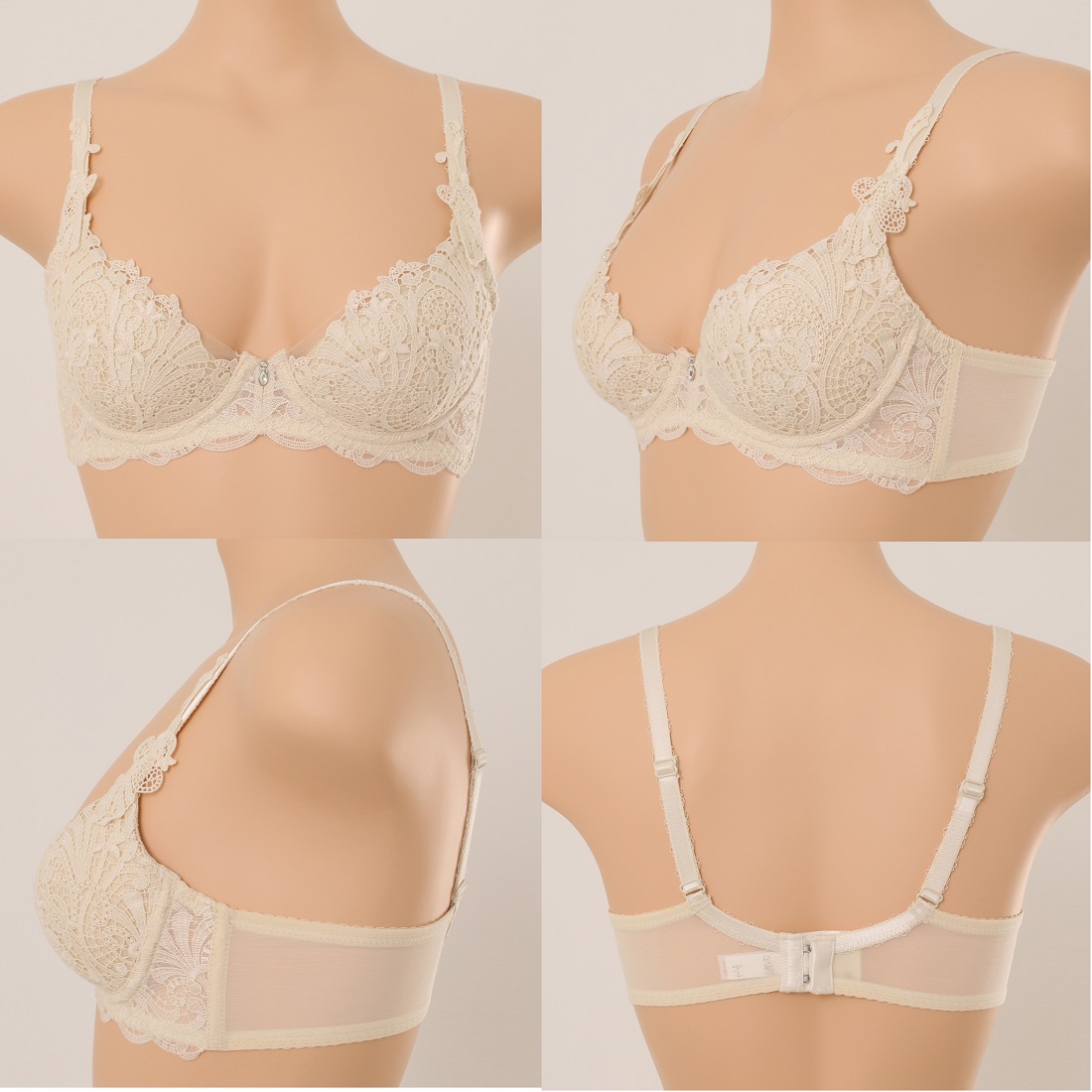 부드러운 코튼 터치의 케미컬 레이스에 시스루한 망과 모티브를 매치하여