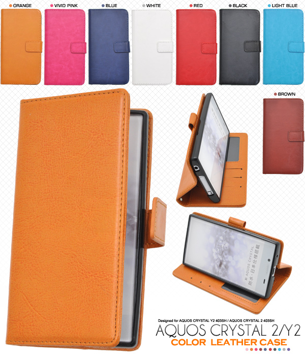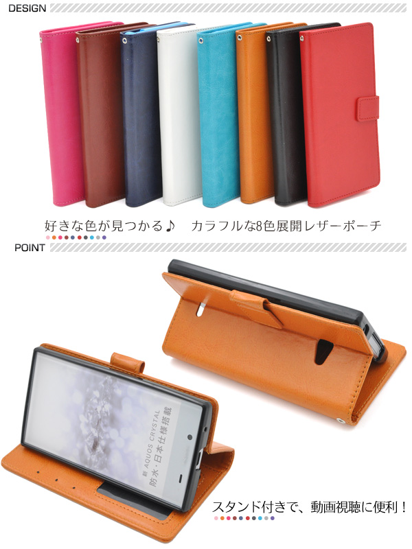 カラフルな8色展開のAQUOS CRYSTAL 2/Y2 403sh用カラーレザースタンドケースポーチ。