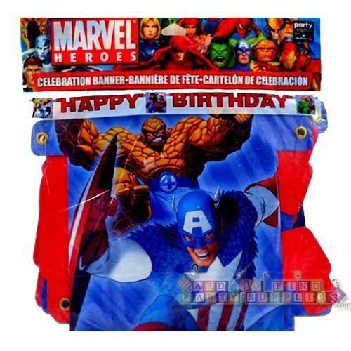 -. Feature : Party in Stytle with the Marvel Heroes Banner / Featuring Your Favorite Super Heroes / Captain America / Fantastic 4 / 5.67 ft long