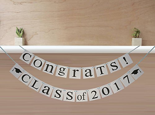 -. Feature : A great way to Celebrate your 2017 graduation !Suitable for Kindergarten, P.R.Imary school ,Senior School,Middle High School, College, Master or Ph.D. graduate . / Especially Designed For The 2017 Graduation -This kit includes two banners, one written "Congrats! ", one written "Class of 2017 ". This congratulatory banner adds two graduation cap pictures to highlight the graduation theme. / Each Card Measures Approx 12*12cm / 4.7*4.7 inch.Ribbon length is about 3 metres ,that means the ribbon is long enough ,you can tie it off easier wherever you need. / Use it as photo props ,take photos to share with your family members and friends or as your baby's keepsake ,when he or she grow up ,it will be full of memory . / Ribbon and cards come separately ,you need to string them together yourself , but it's very easy to assemble ,just in 5 minutes .