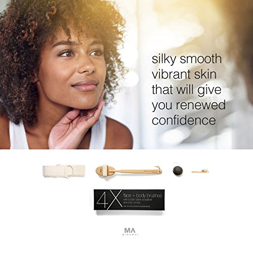 Minamul Luxurious All Natural Dry Body Brushing and Face Brush Bundle, Long Detachable Handle with Natural Boar Bristles, Shower and Bath Brush