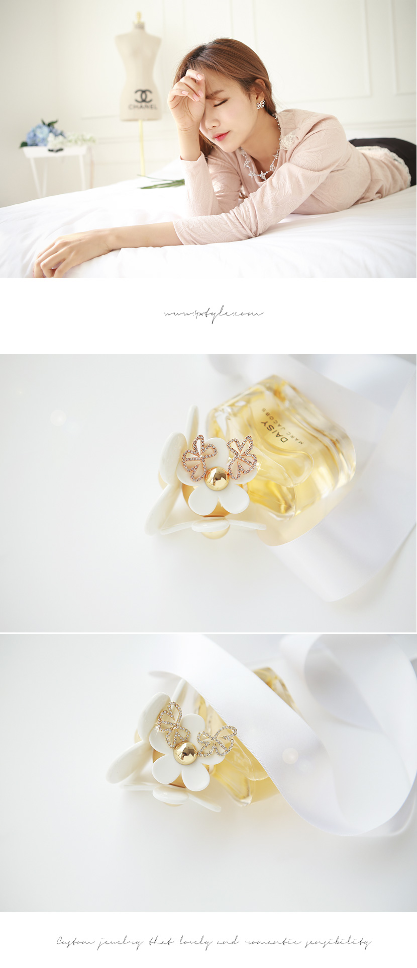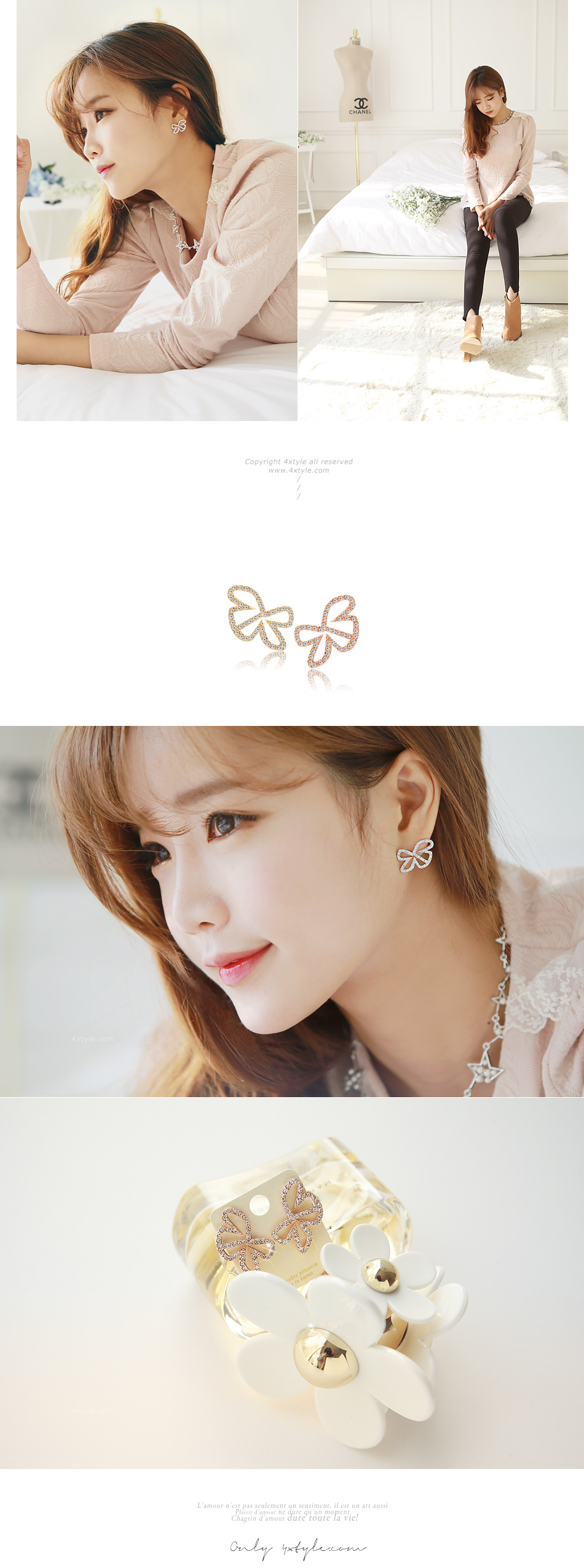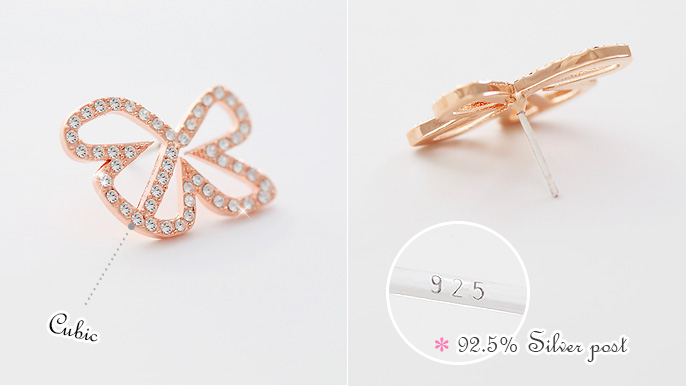 리본의 실루엣이 사랑스럽고 유니크한 러버블 리본 귀걸이. 라인을 따라 큐빅이 촘촘하게 셋팅되어 빛을 받을때마다 반짝반짝 눈부심이 예쁜 아이예요~ 너무 작지않은 적당한 크기로 어떤의상에도 사랑스럽게 폰인트로 손색이 없는 귀걸이예요. 캐쥬얼룩에도 오피스룩에도 의상에따라 귀엽게 또는 고급스럽게 다양한 연출이 가능해서 자주 손이갈 듯한 아이랍니다~ 적당한 크기로 한겨울 퍼 소재의 제품과 함께해도 묻히지 않아 4계절 내내 함께해도 좋아요~ 양쪽 귀걸이가 바라보는 듯 45도 각도로 세워서 착용해도 좋구요,
