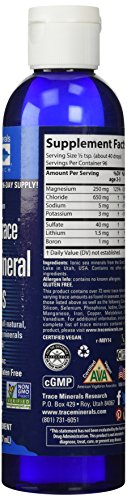 -. Binding : Health and Beauty -. Brand : Trace Minerals Research -. Feature : One 8-ounce bottle of trace mineral drops / Natural mineral concentrate extracted from the waters of Utah's Inland Sea, the Great Salt Lake / Ultra-concentrated; 40 drops equal the mineral content of 1/2 cup sea water with 99% sodium removed / Only 10 mg of sodium per serving / Provides a wide spectrum of health benefits -. Label : Trace Minerals Research -. Manufacturer : Trace Minerals Research -. MPN : CMD01 -. PartNumber : CMD01 -. ProductGroup : Health and Beauty -. ProductTypeName : HEALTH_PERSONAL_CARE -. Publisher : Trace Minerals Research -. Studio : Trace Minerals Research -. Title : Trace Minerals Research - Concentrace Trace Mineral Drops, 8 fl oz liquid