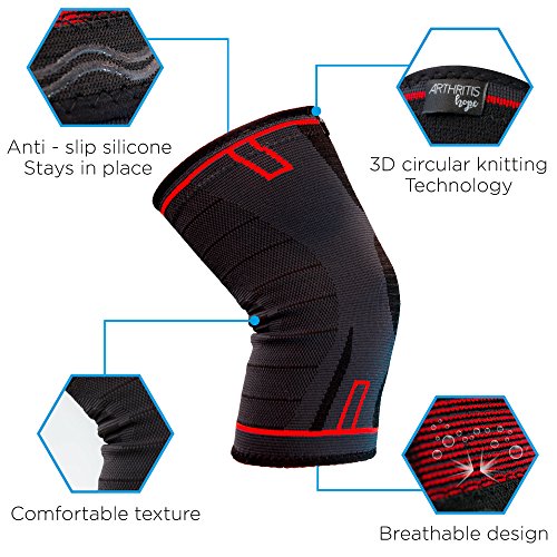-. Binding : Health and Beauty -. Brand : ArthritisHope.com -. Feature : ✅RELIEVES PAIN: Reaches the joint space of the knee and alleviates pain in the meniscus. / ✅OPTIMAL COMPRESSION: Compression knit comfortably massage the soft tissue during movement. This effect reduces pain and speeds up the absorption of edemas and effusions with intermittent compression from the brace / ✅HEATING EFFECT: The sleeve is designed with the newest 3D braiding technology to keep the leg warm at body temperature and reduce the stiffness caused by arthritis. / ✅ANTI-SLIP SILICONE: Anatomically shaped and sits perfectly without slipping. / ✅COMFORTABLE: Breathable materials, very elastic edges, and an extra soft area at the back of the knee ensure additional wearing comfort and support. Specially for osteoarthritis. -. IsAdultProduct : 0 -. Label : ArthritisHope.com -. Manufacturer : ArthritisHope.com -. MPN : AHSleeve -. PackageQuantity : 1 -. PartNumber : AHSleeve -. ProductGroup : Health and Beauty -. ProductTypeName : HEALTH_PERSONAL_CARE -. Publisher : ArthritisHope.com -. Studio : ArthritisHope.com -. Title : Arthritis Hope Knee Compression Sleeve - Knee Braces for Arthritis, give Support and Comfort from Pain caused by Osteoarthritis and Rheumatoid arthritis