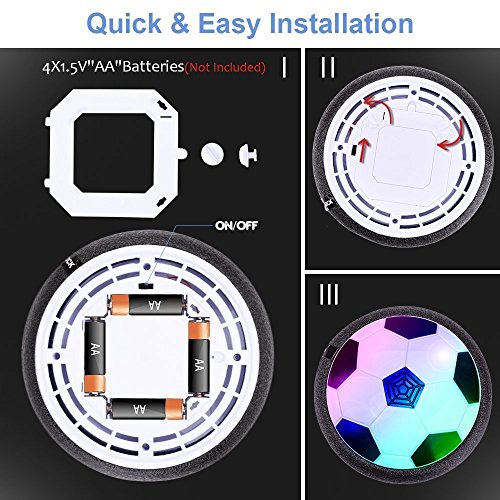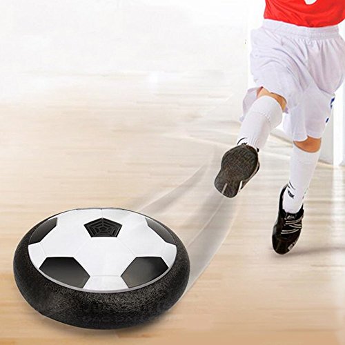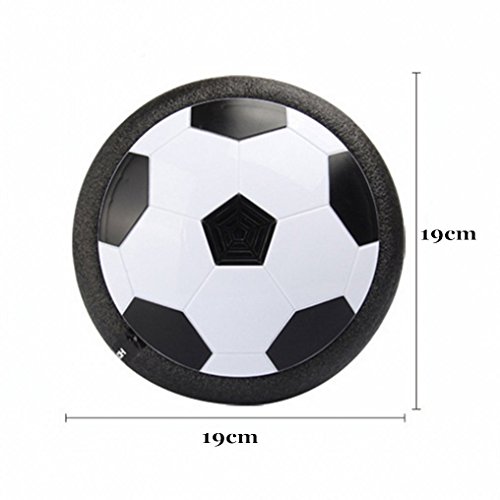 Features: Kids can set up the goal and play it like a real soccer activities at home with his/her friends. Besides, it is a nice football toy for family playing together and cultivate child's interest of sports. The Air Power Soccer Disk is an amazing new disk that turns nearly any smooth surface into a sports court, inside or out. With the modest size of 7.5" which is similar to Size 4 soccer, neither too big nor too little. More suitable for multiplayer game in room.