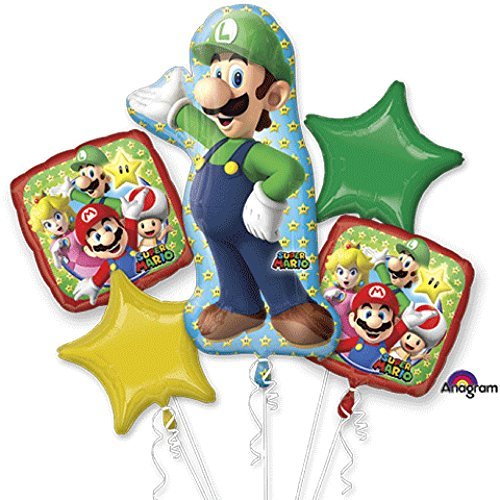 -. Feature : Mario Bros. Luigi Bouquet Of Balloons / Includes 5 foil balloons: one 20" x 38" SuperShape, two 17", and two 19" stars / packaged, use helium to inflate / official Nintendo licensed product