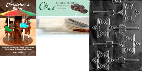 Cybrtrayd Star of David Lolly Chocolate Candy Mold with 25 4.5-Inch Lollipop Sticks and Chocolatier's Guide
