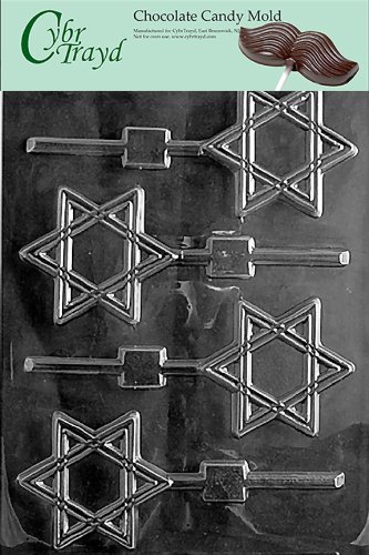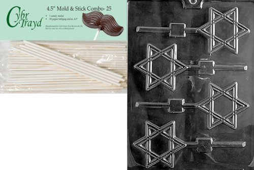 Cybrtrayd Star of David Lolly Chocolate Candy Mold with 25 4.5-Inch Lollipop Sticks and Exclusive Cybrtrayd Copyrighted Chocolate Molding Instructions