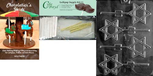 Cybrtrayd Star of David Lolly Chocolate Candy Mold with Chocolatier's Bundle, Includes 25 Sticks, 25 Cello Bags, 25 Gold Twist Ties and Chocolatier's Guide