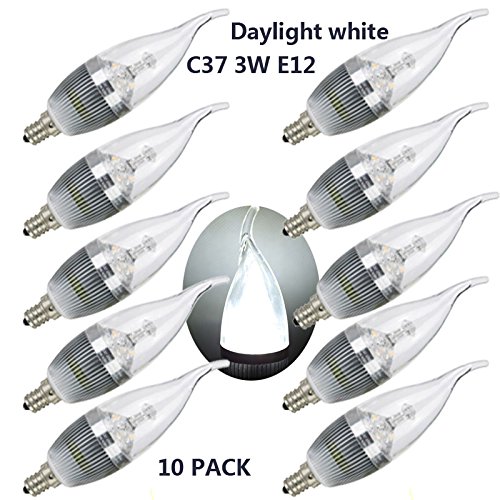 Broda lighting LED Candle Bulb, E12 3W, 30W Equivalent, Daylight White 6000K, 300LM, CRI80, Non-dimmable, LED Candelabra Bulb (10 Pack, Flame Tip)