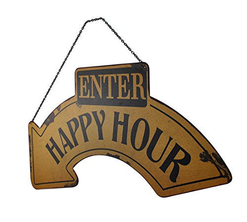 ENTER HAPPY HOUR Sign with Curved Arrow