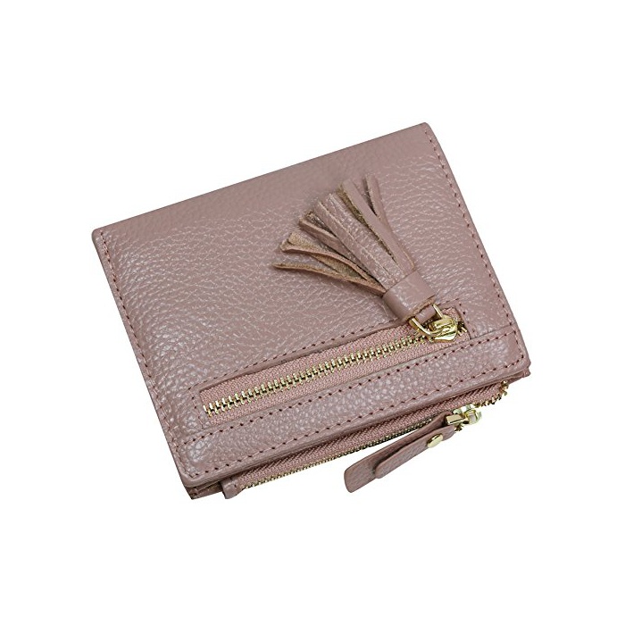 원본상품명: [Lambent]薄型 可愛い 高級レザ 二つ折り短財布牛革 レディス 多機能 本革 フリンジ ショト ウォレット (ピンク)