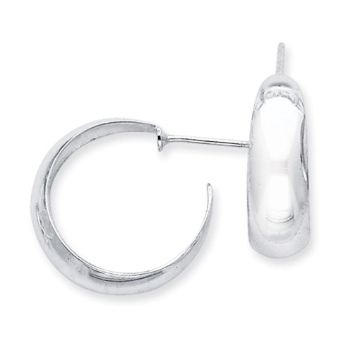 Simple and classic, our mirror polished sterling silver earrings feature a half hoop design with a tapered domed shape that is as flattering, as it is beautiful. They measure 25mm (1 inch) long by 8mm wide and completed with a post back. Made in the USAFeature