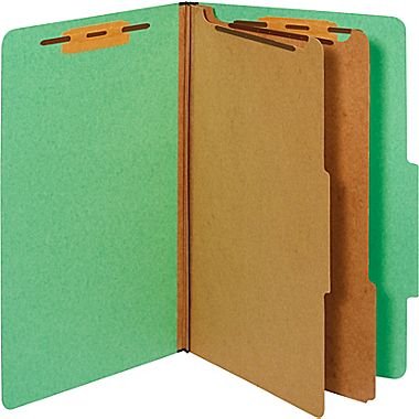 -. Title : Staples® Colored Pressboard Classification Folders, Legal, 2 Partitions, Green, 20/Pack