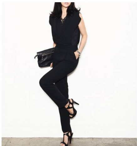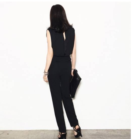 シンプルな、大人っぽいブラックジャンプスーツです。