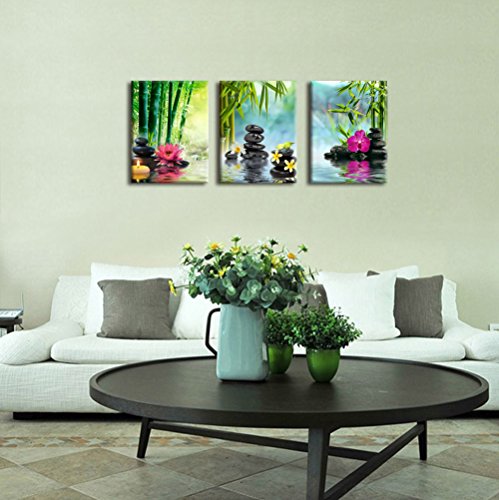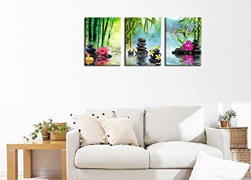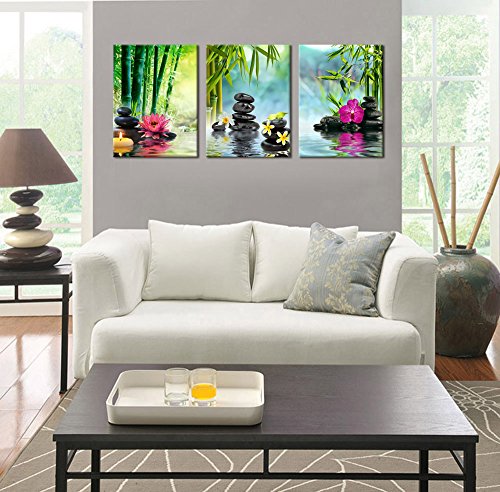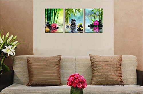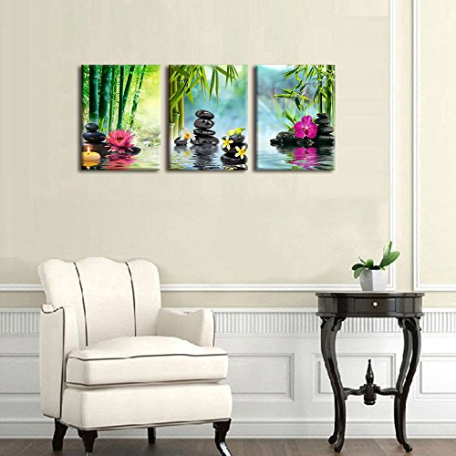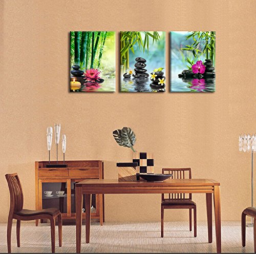-. Binding : Kitchen -. Brand : yearainn -. Feature : High resolution canvas P.R.Ints by using a high quality mirrored gallery wrap technique which extends the image all the way around the wooden frame. This creates an immersive 3-D effect and makes the P.R.Ints look great without adding an expensive additional frame. / High quality canvas stretched over a real wooden frame. Metal hanging hook attached on frame already this canvas art work is ready to hang out of the box. / A Perfect choice for wall decor such as home, office, hotel, bar and others. A great gift idea for your relatives and friends. / Due to different monitors, actual P.R.Int colors may be slightly different from the product image shown online. / Size is 20x30in x 3P ( 50x75cm x 3P) -. Label : yearainn -. Manufacturer : yearainn -. ProductGroup : Home -. ProductTypeName : HOME -. Publisher : yearainn -. Studio : yearainn -. Title : X Large Canvas P.R.Ints Zen Wall Art - SPA Black Stone Green Bamboo Pink Waterlily and Frangipani Painting P.R.Int on Canvas Framed Ready to Hang 3 Panel Modern Giclee Art Work for Hom Office Decoration