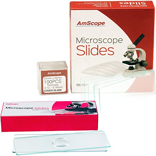 AmScope BSC12-72P100S22 72 Pre-Cleaned Blank Plate Microscope Slides and 12 Single Depression Concave Slides Plus 100 Coverslips