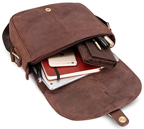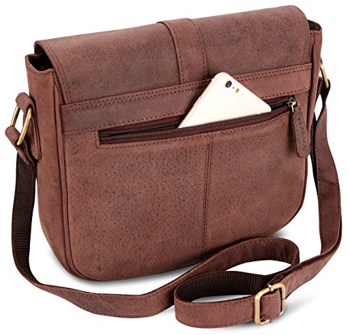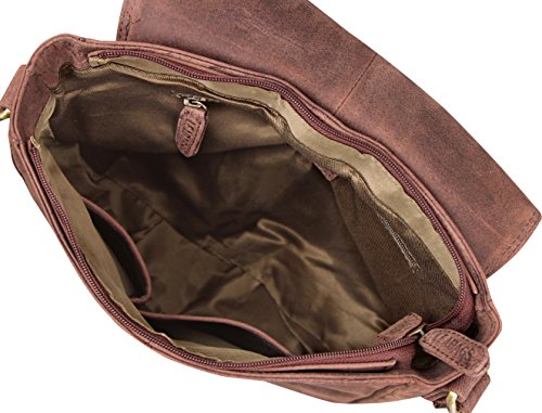 -. Feature : Highlights: genuine buffalo leather - Top quality - Classy vintage look / Features: thanks to the fine stitching and the excellent manufacturing, this genuine leather bag is a stylish and loyal companion for your everyday life. / Measurements (L x W x H): approximately 9,8 x 8,7 x 3,1 in / This shoulder bag is incredibly roomy. The many pockets and a large main compartment offer plenty of space to carry your belongings. / Ideal comfort: the shoulder strap is reinforced by a strong nylon lining, which makes the bag more comfortable to carry.