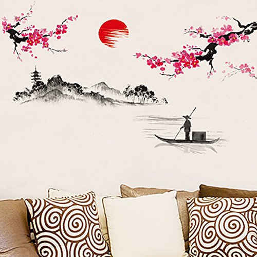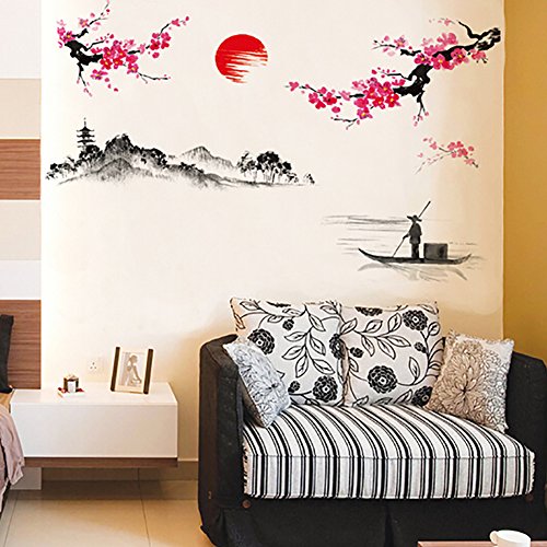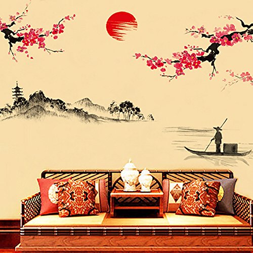 -. Title : Adarl Chinese Plum Flower With Landscape Picture Wall Sticker