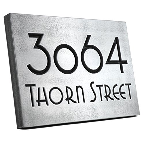 -. Feature : Handcrafted and made in the USA with products from the USA. Custom made for you. / Comes with keyhole style mounting and screws. Template is also included for easy installation by you / Made of 30 pound HDU (type of plastic) that won't warp, rot or promote insects and is fine outside. / Coated with a metal coating that won't flake or peel. Looks like cast but at fraction of the P.R.Ice. / Size is 12.5 x 8.75 x 1 inches. Lettering will be recessed and plaque will be metal coated in our Pewter finish. Any questions please EMAIL us. Thank you for your business!